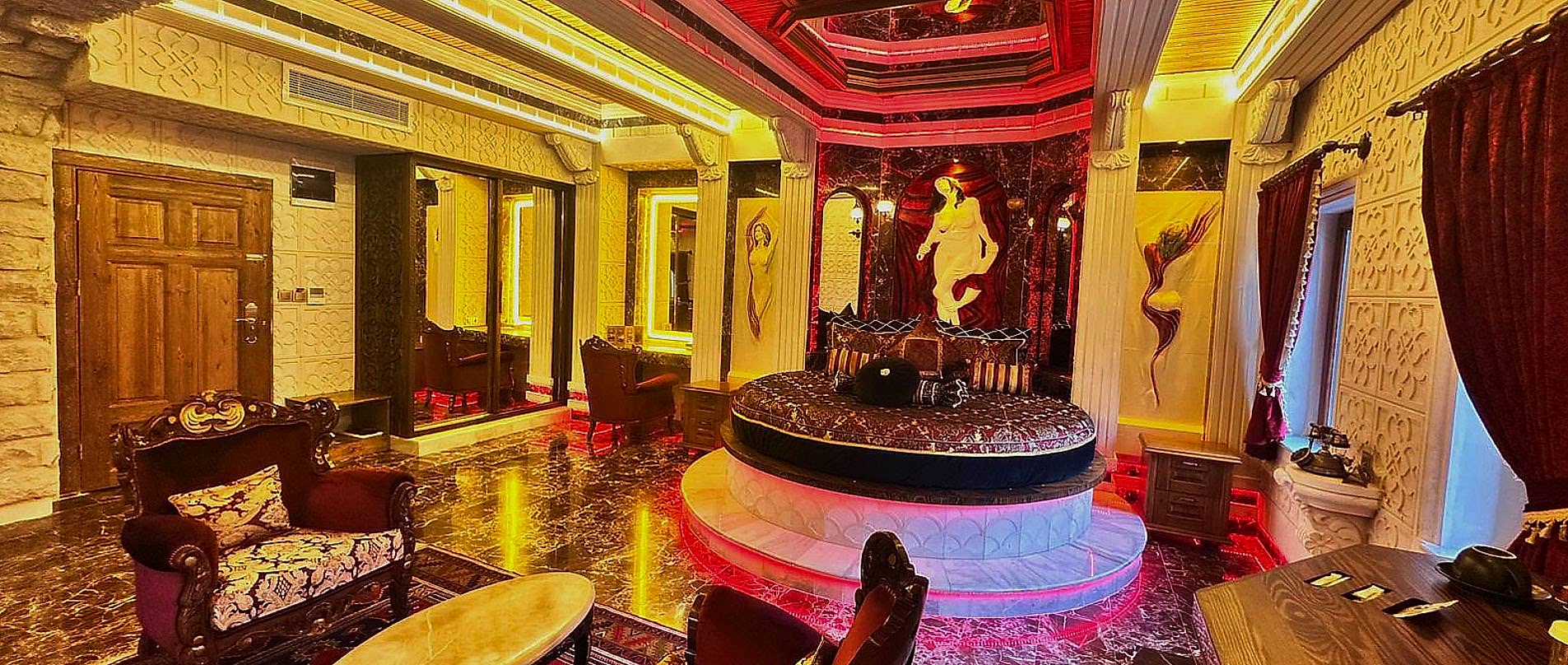 Özel tasarımı ve antika mobilyalarla dekore edilmiş şık atmosferiyle EROS Suit, konfor ve lüksü bir arada sunar. Oda içerisinde bulunan el yapımı 2,50 metre çapındaki yuvarlak yatak, karşısında konumlanan özel tasarım Elazığ vişne mermeri kaplamalı spa jakuzisi ile benzersiz bir deneyim yaşatır. Dev ekran televizyon, keyifli anlar geçirebileceğiniz özel şömine ve zarif detaylar, suitin ayrıcalıklı dünyasını tamamlar. Lüks banyosunda Türk hamamı, yağmur ormanı duşu ve özel sauna yer almaktadır. Suit içerisinde Nespresso kapsüllü kahve makinesi, kapsüllü Türk kahvesi makinesi ve su ısıtıcısı bulunmaktadır. Ayrıca Netflix, YouTube ve Amazon Prime erişimi sunan televizyon ile oda içi eğlence deneyiminizi dilediğiniz gibi yaşayabilirsiniz. L’Occitane marka banyo buklet ürünleriyle konfor ve lüks her detayda hissedilir.